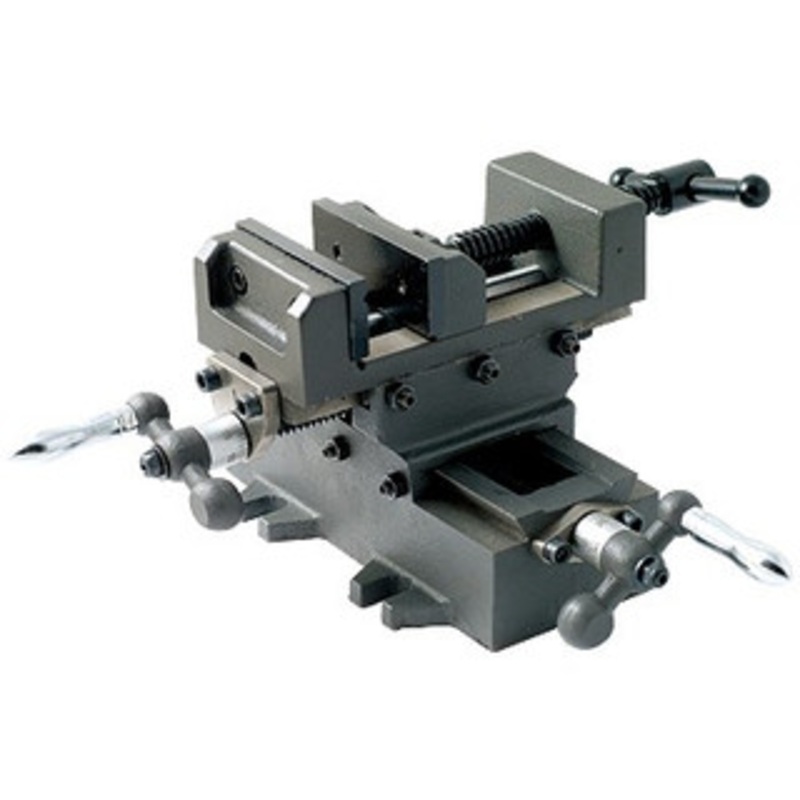 Cross Travel 3-3/4" Jaw width 3-1/6" Long Travel 4" Weight 10.5 2-Way Cross Slide Machine Vise - GSS-103 Suitable for clamping soft materials such as aluminum, copper etc. Secures firmly on drill press table and moves similar to vertical mill. Accurate pos