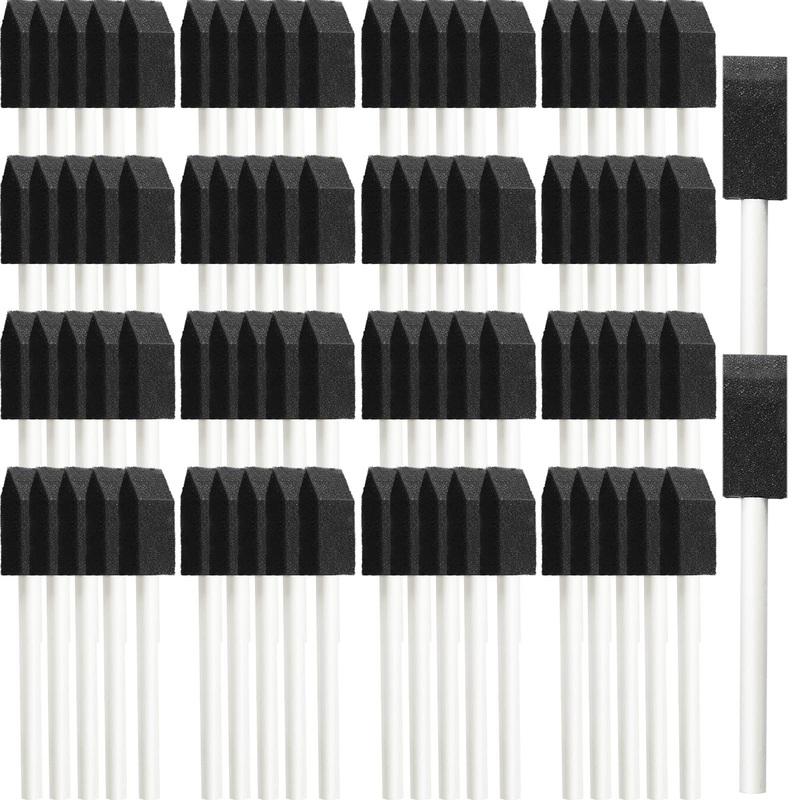200 Pack Foam Brush Bulk Foam Paint Brushes Sponge Black Foam Brushes for Painting 1 Inch with Handle Wood Grip Foam Art Paintbrushes for Paint