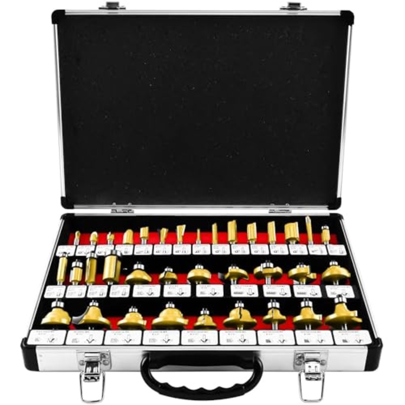Brand: 8MILELAKEFeatures: Precision Ground 1/4" Shanks, Professional grade for wood working.This comprehensive set of Tungsten Carbide tipped bits should fulfill just about all needs.Bit Holders in Case are Labeled with Schematic Showing Groove and Design