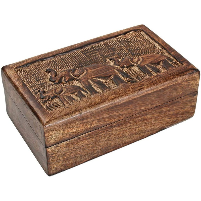 Brand: AjunyColor: BrownFeatures: HANDMADE ELEPHANT DESIGN: The box features a handmade elephant design, symbolizing wisdom, strength, and good luck. The intricate detailing of the elephant adds a touch of beauty and charm to the box, making it a visually