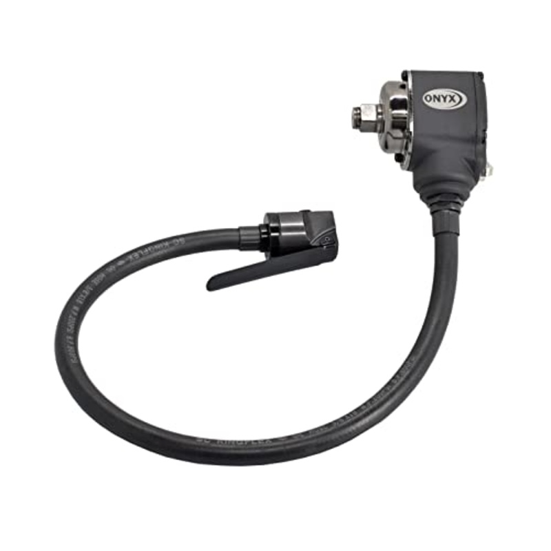 Details: The Astro Tools 1831 ONYX 3/8″ Palm Impact Wrench – 445ft/lb is designed with a 3.46″ impact head length and a reactionless design, which means the impact can be gripped with only a few fingers. This tool features a 20 hose with swivel ends and remote throttle, meaning wherever your hand and arm can fit, you can now impact. This impact wrench ensures there is adequate space behind your hand for the bolt to unthread if held in your palm. You can now achieve true remote impacting access with 445ft-lbs of torque from this all new palm impact!