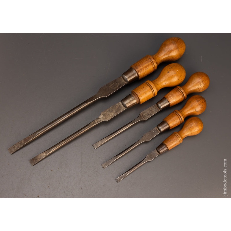 Awesome Vintage Set of 5 Cabinet Makers Screwdrivers by W.H. CLAY – 113399