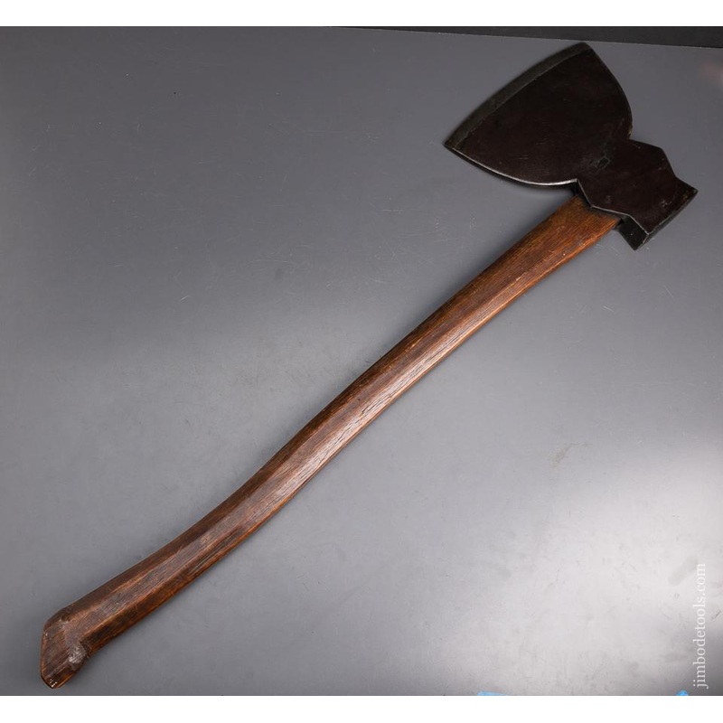 9 pounds. Great 10 inch edge. 33 inch faceted handle.