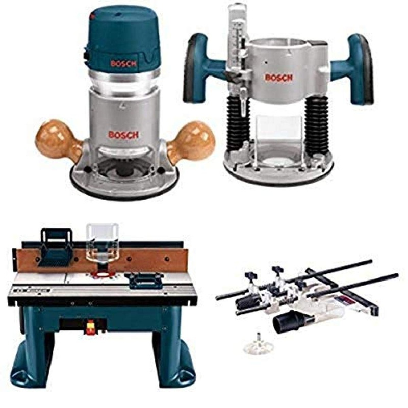 Brand: BOSCHFeatures: Bundle includes Bosch 1617EVSPK Router, RA1181 Benchtop Router Table, and RA1054 Deluxe Router Edge GuideElectronic variable speed plunge and fixed base router kit; soft start, micro-fine depth adjustments2-1/4-horsepower router combi