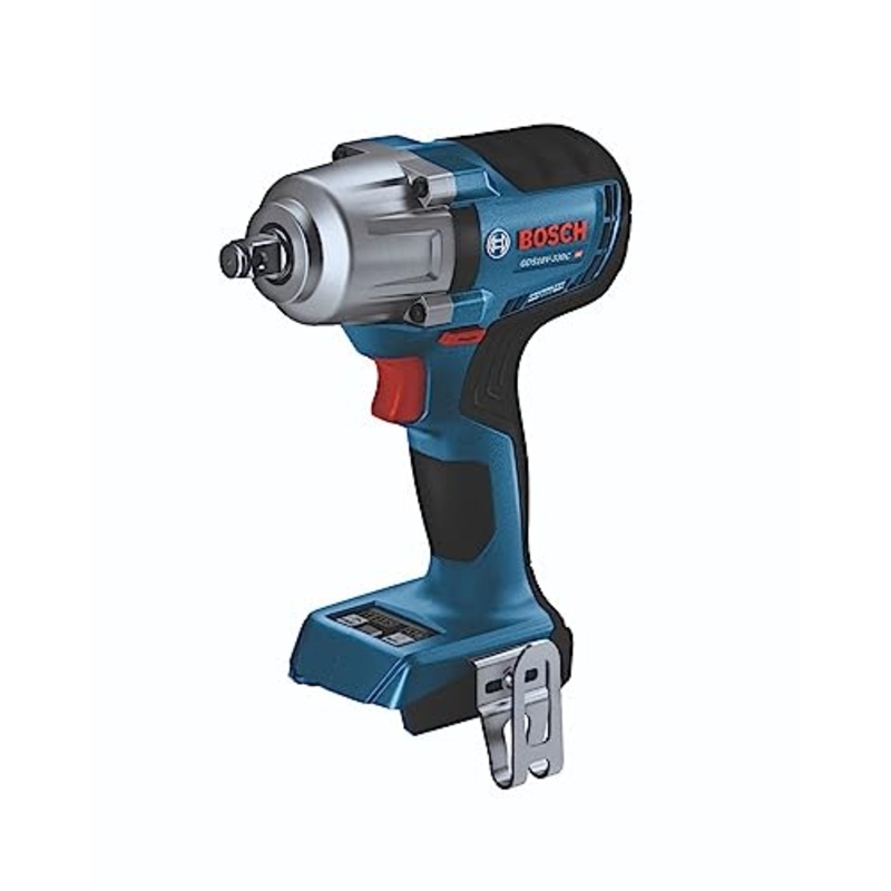 The Bosch GDS18V-330C 18V Brushless Connected-Ready 1/2 In. Mid-Torque Impact Wrench delivers outstanding performance, whether driving lag bolts through heavy lumber, assembling metal structure, or removing stubborn lug nuts. This impact wrench has a 1/2 In. drive with a friction ring and thru-hole for quick socket changes and secure attachment. The brushless motor delivers up to 330 Ft.-Lbs. fastening torque and 590 Ft.-Lbs. breakaway torque while providing long runtime. Modes such as Auto Stop can be fine-tuned, to help prevent over driving, which can damage materials and fasteners. Presets for specific bolts, screws and materials can be customized and saved to the tool via the Bosch Toolbox App (connectivity module sold separately). When reversing in bolt mode, Auto Bolt Release senses when the bolt is loosened and stops rotation to help prevent accidental dropping of bolts and nuts during removal. In addition to customizable settings and modes, connectivity (module sold separately), provides tool specific information and feedback. This is a bare tool kit; battery and charger are sold separately.