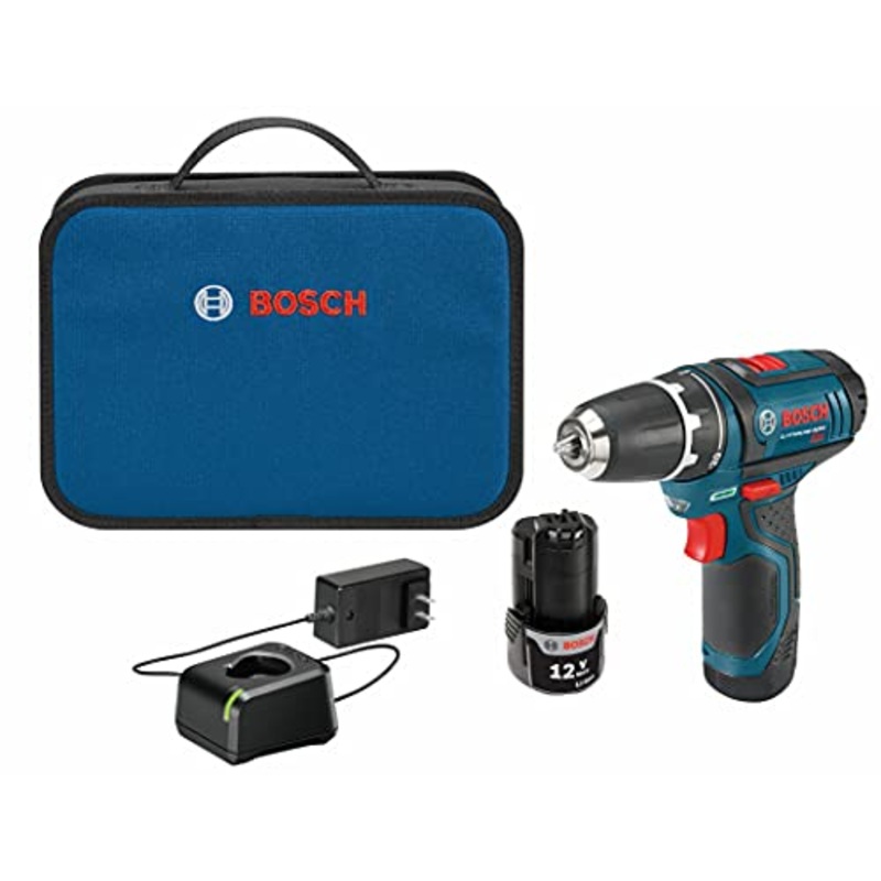 Featuring a compact, lightweight design for easy handling overhead and in tight spaces, the Bosch 12-Volt max drill/driver lets you tackle professional jobs with ease. Offering high torque and the convenience of two speed settings, this tool is powerful and user-friendly for fast, efficient drilling and driving. This drill/driver combines speed, power, and performance, making it ideal for professionals and do-it-yourselfers. It comes with two batteries, a charger, and a carrying case.