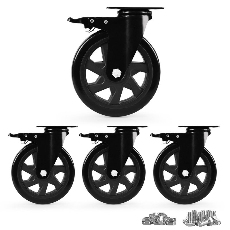 Brand: EGOFIXColor: BlackFeatures: Silent Mode/Floor ProtectionOur 6-inch heavy duty swivel casters are made from high-quality polyurethane, which is durable, shock-absorbing, and silent when it comes to impact absorption. This means they provide a smooth,