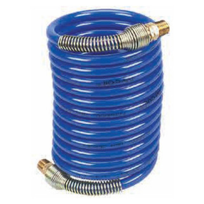 Coilhose Model No. S38-12B53 Hose ID 3/8" Thread Size 3/8" Length (feet) 12 Coilhose Pneumatics Heavy-Duty Self-Storing Nylon Recoil Air Hose S38-12B53, 3/8" Hose ID, 12 ft. Highly flexible nylon Able to handle heavy tools and abusive environments Swivel b