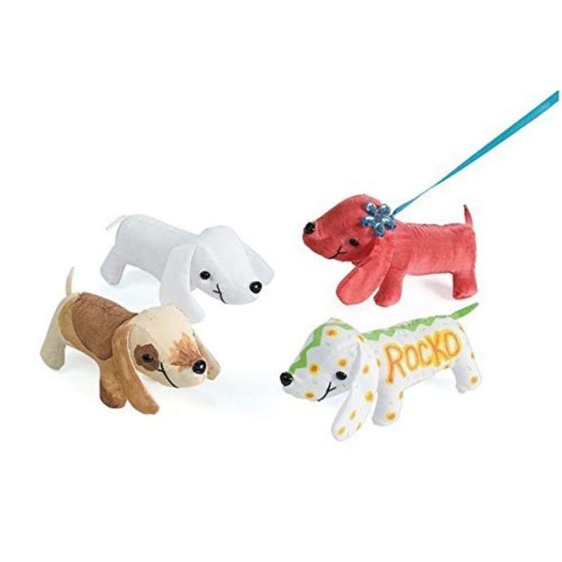 Details: Children will have a doggone good time painting and decorating these lovable puppies! the white fabric is a perfect base for Colorations fabric paint, markers and more! (decorate puppies with classmates’ signatures and doodles for an end-of-year project; use liquid watercolor, glitter, or make a collar or hat for your puppy; make an adorable school year memento; working with paint, markers and other art supplies develops fine motor skills; 4-1/4″H x 8-1/4″L; an ideal arts and crafts project! these cute stuffed animals will attract kids and encourage tons of creative expression! ) – discount school supply item # DOXIE.