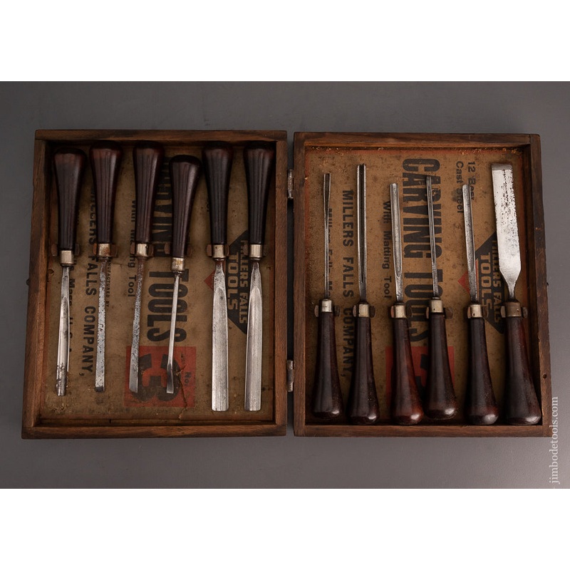 Complete Set of 12 Rosewood Handle MILLERS FALLS Carving Tools in Original Box – 103602
