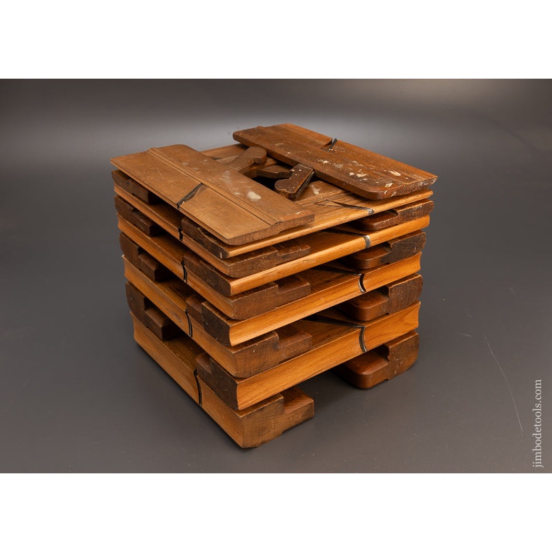 Crisp and fine. Even numbered set 2-18. Pitched at 55. Skewed irons. Ca. 1830-81. All original wedges and irons which are fine. Good users all with just some paint splatters, scratches, a couple of tack holes and a screw hole in one plane.
