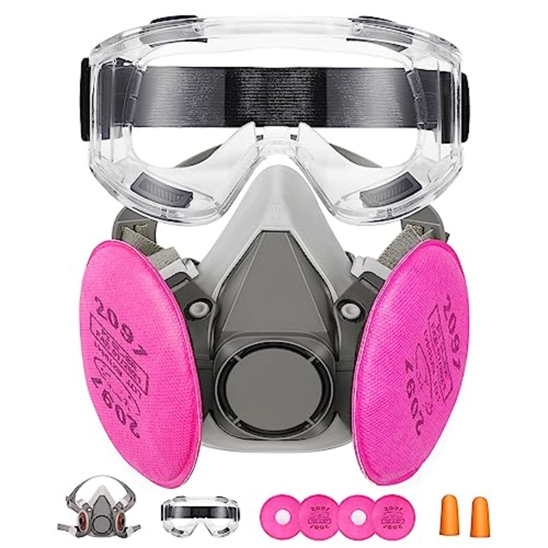 Brand: DADUMKColor: MulticolorFeatures: You Will Get1x Respirator 6200, 4 x 2091 Filters, 2 x Earplugs1x Goggle.Eyes & Ears ProtectionIn some special environments, such as metal cuttingcutting grassmachining, you need to protect your eyes and ears even mor