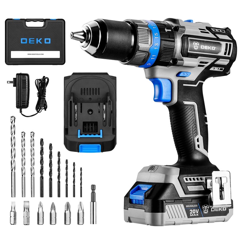 Brand: DEKOPROColor: Black GrayFeatures: UPGRADED BRUSHLESS MOTORDEKOPRO cordless drill with the max 550 In-lbs torque fits a range of various applications. High performance brushless motor ensures more stable. Compared brushed drill, no sparks are generat