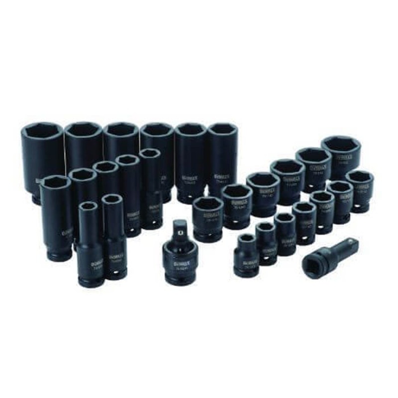 DeWALT Socket Set, Deep Standard, Yes Impact Rated, Imperial, 28 pcs, 6 Points, Included Socket: 7/16 in, 1/2 in, 9/16 in, 5/8 in, 11/16 in, 3/4 in, 13/16 in, 7/8 in, 15/16 in, 1 in, 1-1/16 in, 1-1/8 in 6-Point Impact Socket, 1/2 in Drive 7/16 in, 1/2 in,
