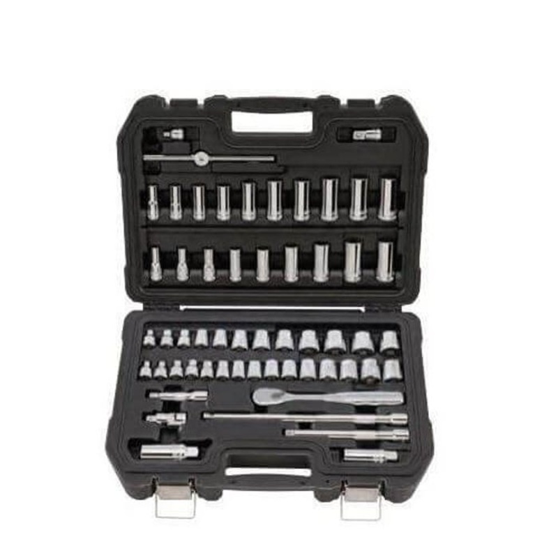 With the 56-piece combination socket set, you can be sure you have the right tool for the job. The set includes a variety of sockets, extensions, adapters, universal joints and a ratchet for your convenience. The sockets include Direct Torque technology to