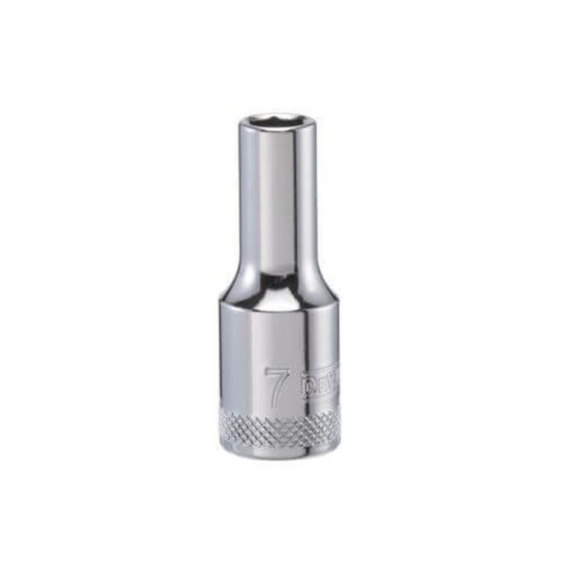 DeWALT Socket, Impact Rated: No, Metric, 3/8 in Drive, Deep Socket, 8 mm Socket, 1-25/32 in Overall Length, 21/32 in Drive End Width, 15/32 in Socket End Width, 6 Points, 1-11/32 in Bolt Clearance Depth, Vanadium Steel, Polished Chrome Manufacturer Part Nu