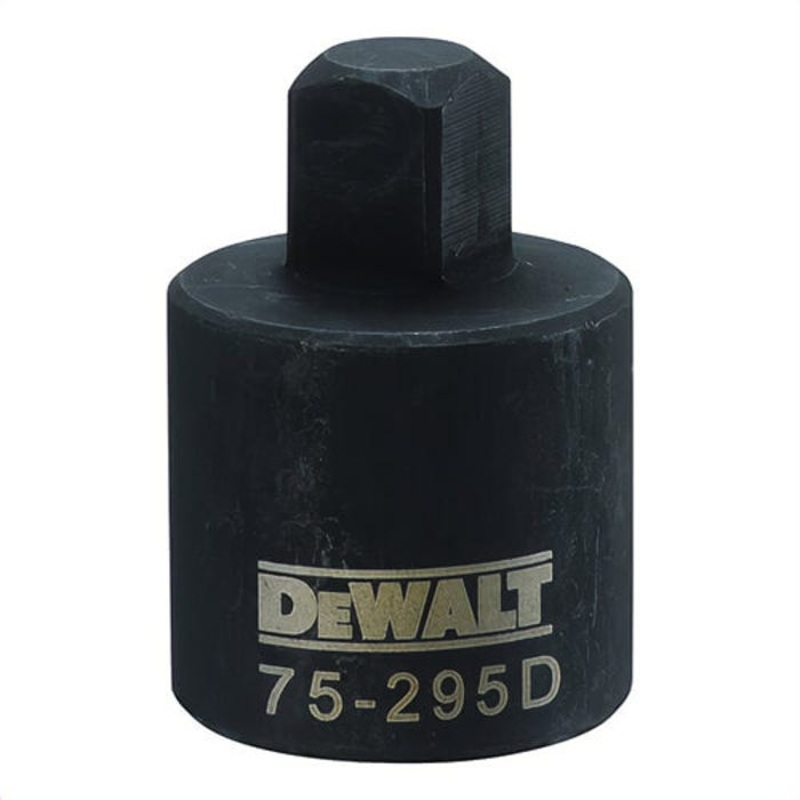 DeWALT reducing socket adapter, yes impact rated, measurement system: imperial, 1/2 in male drive, 3/4 in female drive, 2-1/8 in OAL, female x male adapter style, chrome vanadium steel, black oxide. Manufacturer Part Number: DWMT75295OSP Manufacturer: Stan