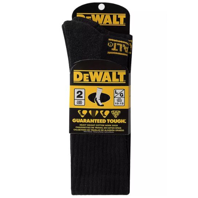 Enjoy all-day comfort in the DeWALT Men's Heavyweight Cotton Crew Work Socks 2 Pack. Soft cotton-blend fabric hugs your foot, and the antimicrobial design keeps feet fresh.Features and Benefits53% cotton, 42% polyester, 4% Spandex and 1% nylon provides com