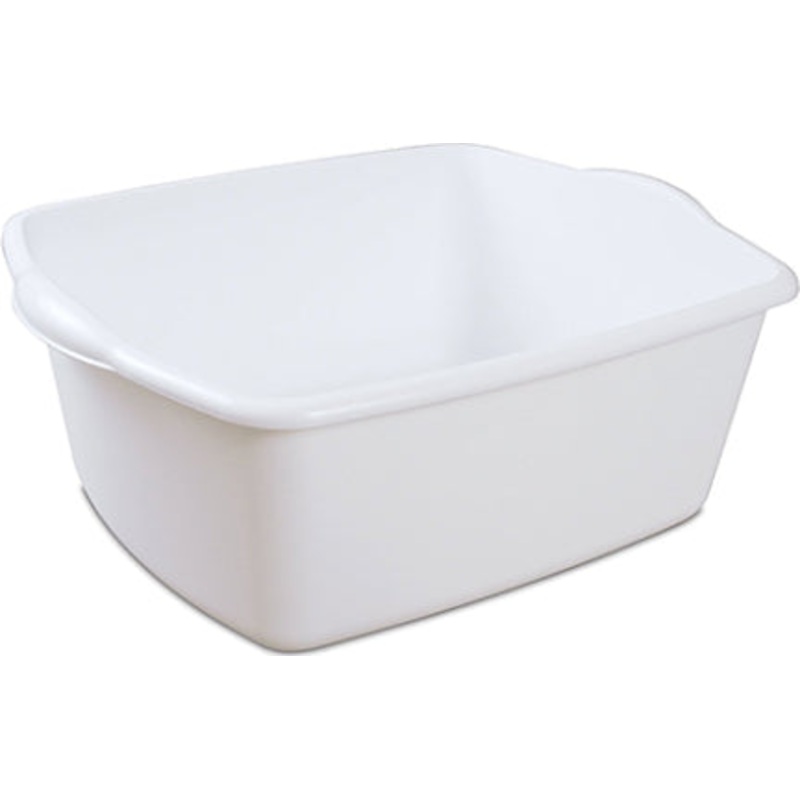 18-Quart Dish Pan, White, 12-Pack. Outside Dimensions:17.5 x 14.25 x 7. Includes 12 Dishpans. Made in the USA. Fits in a double sink. Durable, heavy duty construction. White.