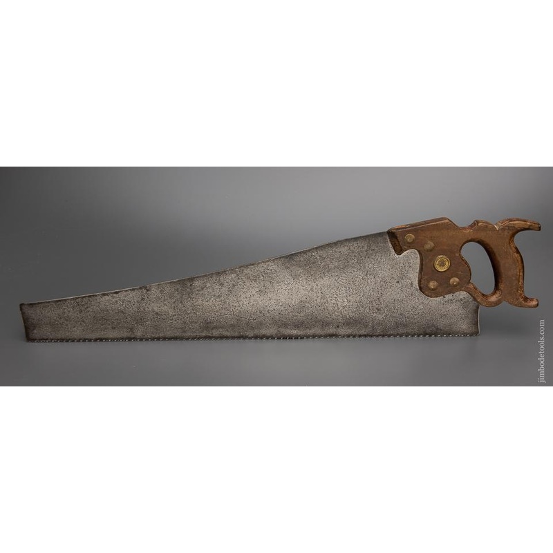 Straight and sharp. 7 point, 26 inch crosscut. Fine handle. Even pitting all over.