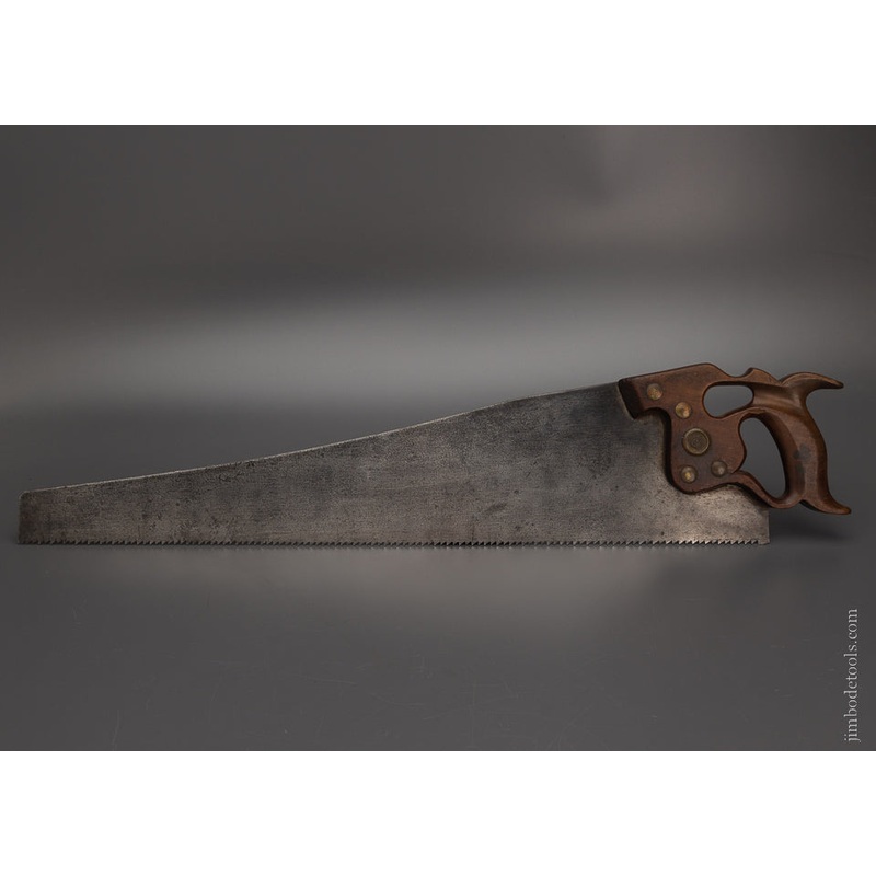 Straight and sharp. 5 1/2 point, 26 inch, rip. Handle is a little rough, but is all there.