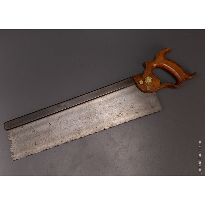 Also made on medallion WHEELER MADDEN & CLEMSON. 11 point, 16 inch, crosscut. Straight and sharp. Horn chips. Ca. 1856-59. PART OF A COLLECTION OF 1100 BACK SAWS WE HAVE ACQUIRED AND WILL BE LISTING EVERY DAY FOR THE NEXT YEAR.