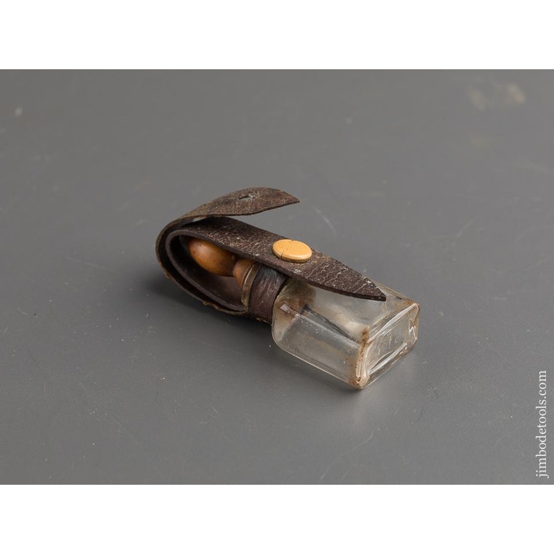 An oil can or bottle in this case that hangs on a button and has a brush applicator. 2 7/8 inches tall. Marked 213 on the bottom of the bottle.