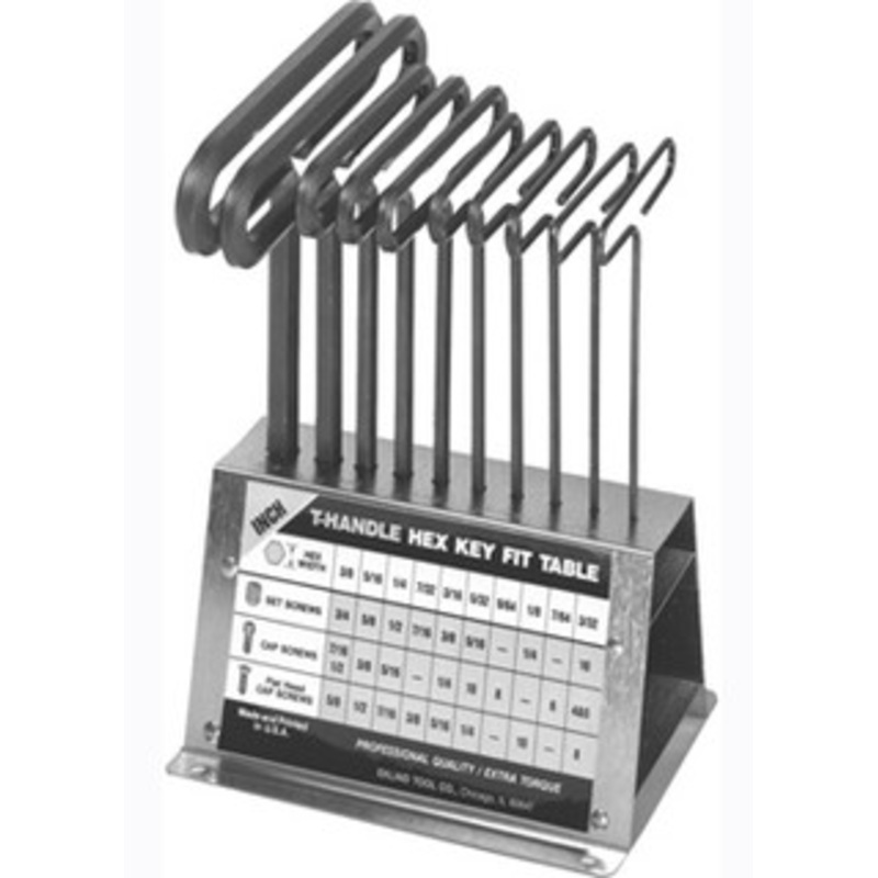 Arm Length 9" Key Sizes 2.2, 2.5, 3, 4, 5, 6, 8, 10 mm Eklind Long Reach T-Handle Hex Key Bench Set -36198 Keys are high-quality 8650 chrome nickel alloy steel, precision drawn for closest tolerance to insure fit into screw sockets. Hardened and tempered b
