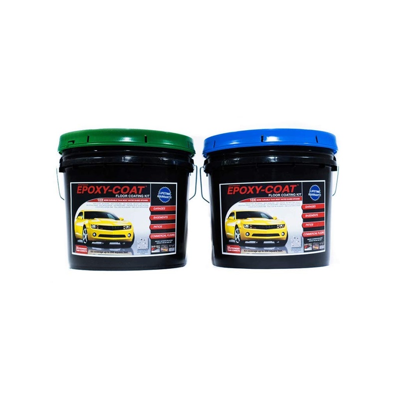 Epoxy-Coats garage floor coating is the most durable and longest lasting 100% solids Cycloaliphatic epoxy floor coating kit on the market today. Epoxy-Coat 100% solids floor coating kit is ideal for garage, basement, patio, industrial or commercial concrete or wood floor coating. If you wish to compare the thickness after dried application between Epoxy-Coat and normal epoxies you would need over 2.5X the gallons to equal exactly the thickness of 1 gallon of Epoxy-Coat Floor Coating. You can do it yourself in an afternoon and get a beautiful finish on your garage floor, basement, indoor patio, wood floor and even commercial floor coating applications. In addition to your garage floor coating application, Epoxy-Coat can be used in any room in your house safely, and is ideal for childrens play rooms, bathrooms, basements, laundry rooms, kitchens and mud rooms. Epoxy-Coat can be applied in a single coat with the thickness of 5+ coats of paint with no odor and a dry time of 12 hours. Epoxy-Coat is perfect for rough and pitted concrete floors due to the self-leveling nature and 100% solids non-shrinking formula. A single coat of Epoxy-Coat will patch and coat all in one application. Epoxy-Coat floor coating is the most durable and longest lasting epoxy coating kit of its kind, and it outperforms all other national brands. KIT INCLUDES: 1 gallon Epoxy-Coat Part A Color, (2) 28 oz. bottles of Epoxy-Coat Part B, 1 gallon Epoxy-Coat Part A Clear, 2 lbs. Decorative Flake, .25 lbs. of Aluminum Oxide Non-Skid, 9 oz. Prep Solution APPLICATION TOOLS: (2) 3″ Brushes, (2) 9″ Roller Covers (3/8″ Nap), 1 Squeegee, 16″ Mechanical Mixer, Pair of Vinyl Gloves, Spiked Shoes, 2 Mixing Sticks