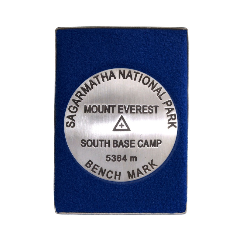 3 1/4 inch diameterCast in fine pewterButton Felt backingIn a fitted fleece interior of a clear-acrylic covered gift box.Place Name: Everest South Base CampElevation: 5364 m.Coordinates: N28 00' 26" E86 51' 34" Location: Sagarmatha National Park While it i