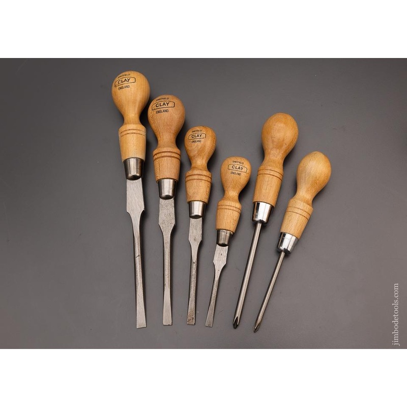Excellent Set of 6 English Cabinet Makers Screwdrivers including Phillips 6 1/2 – 11 1/2 inch – 96992