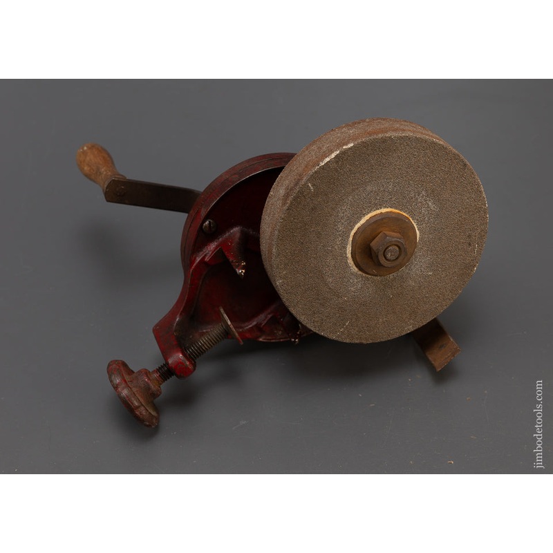 5 inch wheel. A good working tool. The absolute best way to avoid burning the edges of your your tools.