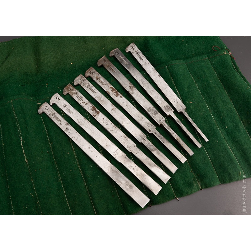 Extra Fine Set of 8 Plow Plane Irons in Roll HEARNSHAW – 104662