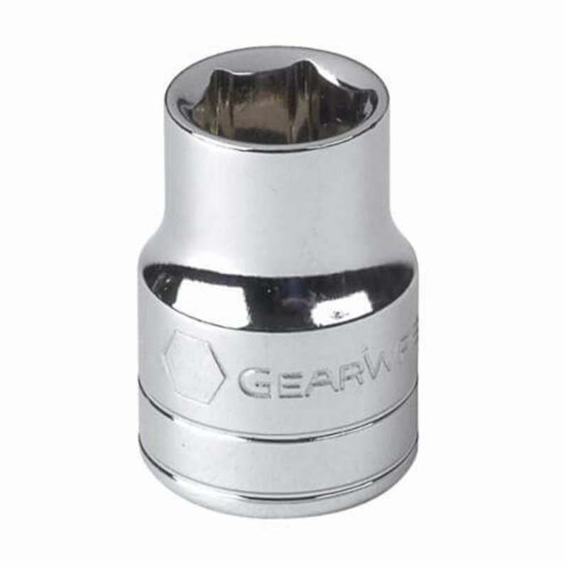 GearWrench Socket, Standard Length, Metric, Square Drive, 1/4 in Drive, 15 mm Socket, 24.5 mm OAL, 14.5 mm Opening Depth, 20.8 mm Drive End Width, 20.8 mm Socket End Width, 6 Points, 5.6 mm bolt Clearance Depth, High Alloy Steel, Polished Chrome. Manufactu