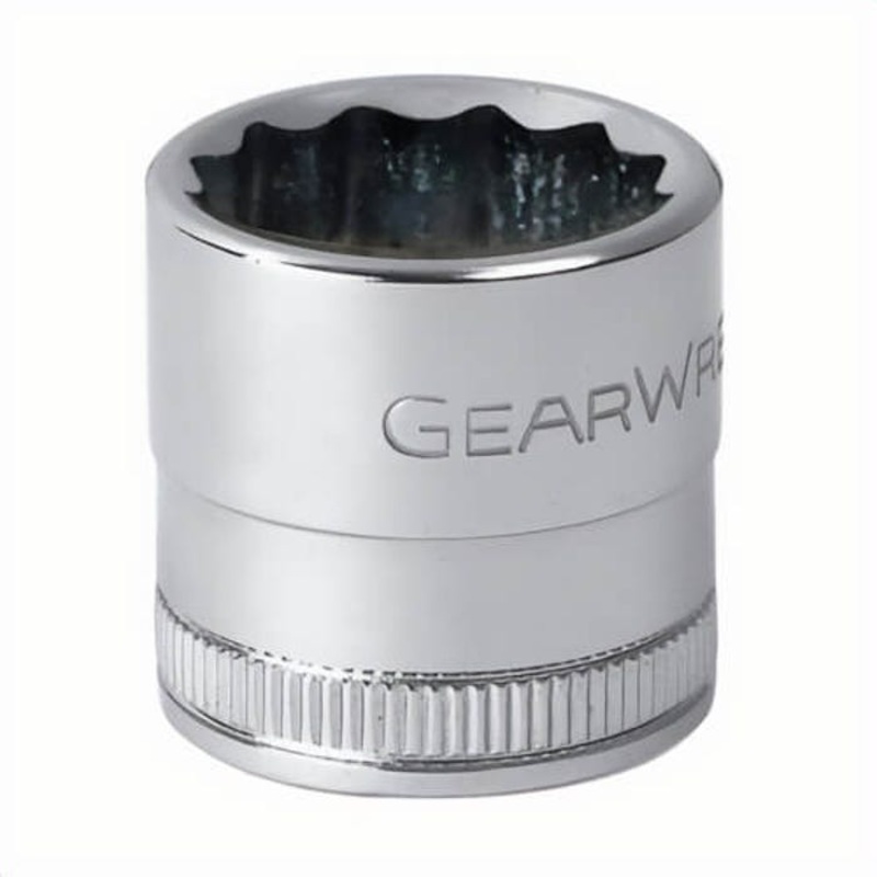 Gearwrench socket, standard length, measurement system: metric, square drive, 1/2 in drive, 19 mm socket, 1.488 in OAL, 0.768 in opening depth, 1.02 in drive end width, 1.02 in socket end width, 6 points, 0.472 in bolt clearance depth, polished chrome.