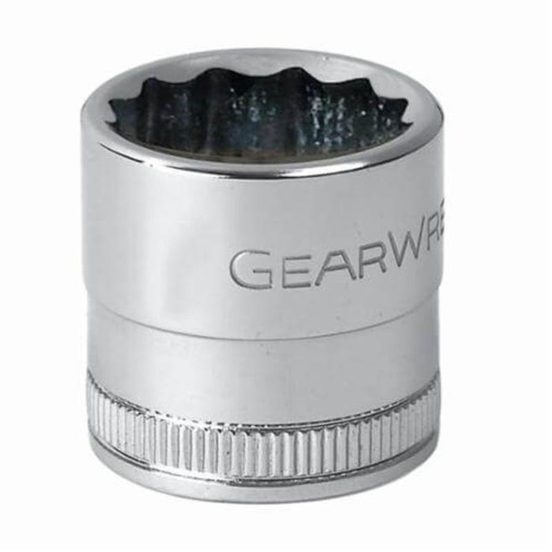 GearWrench Socket, Deep Length, Metric, Square Drive, 1/2 in Drive, 32 mm Socket, 77 mm OAL, 19.6 mm Opening Depth, 40.6 mm Drive End Width, 41.8 mm Socket End Width, 12 Points, 11.5 mm Bolt Clearance Depth, Steel, Polished Chrome. Manufacturer Part Number