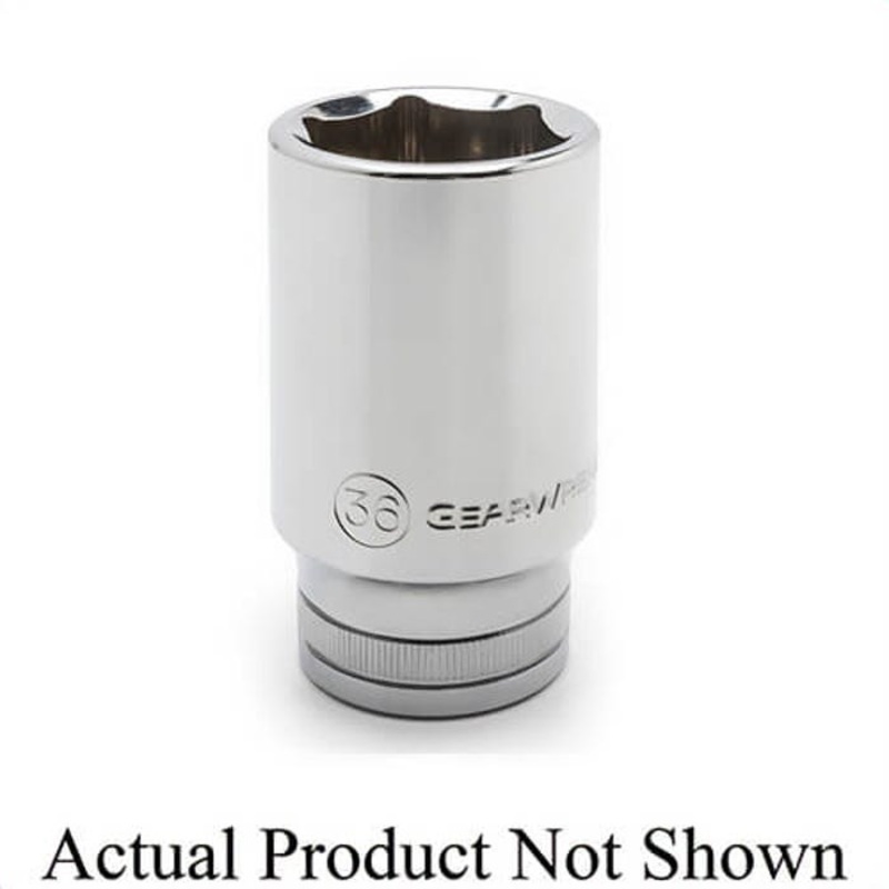 Gearwrench socket, measurement system: metric, hex drive, 3/4 in drive, deep socket, 38 mm socket, 3.54 in OAL, 0.89 in opening depth, 1.65 in drive end width, 2.05 in socket end width, 6 points, hand socket, 1.08 in bolt clearance depth, alloy steel, poli