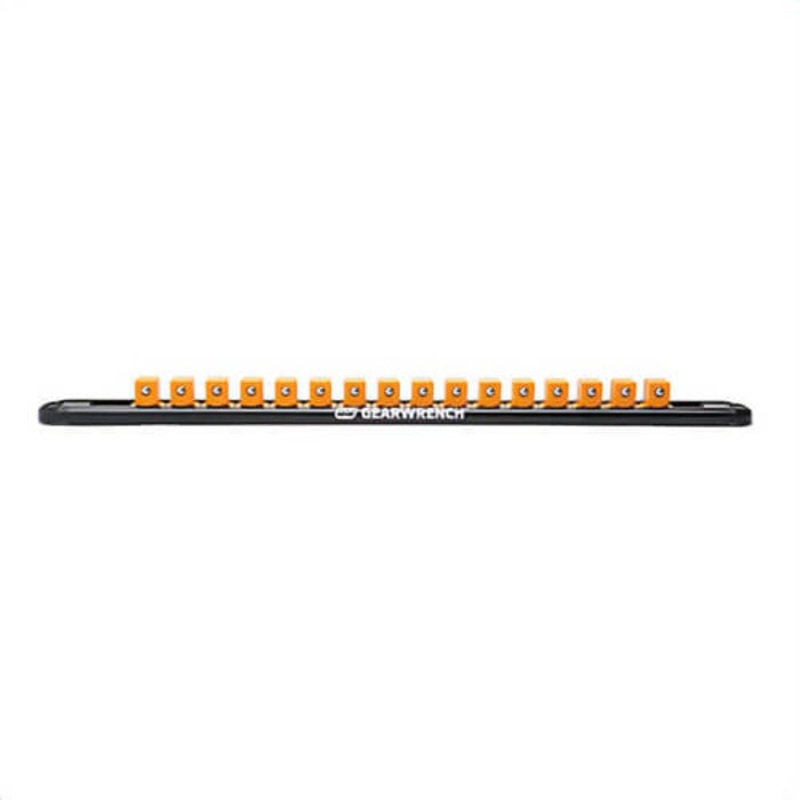GearWrench Magnetic Socket Rail, 3/8 in Drive, 18.3 in OAL, Aluminum.The GearWrench 83127 Magnetic Socket Rail provides a complete and compact storage solution for 16-3/8 in drive sockets. The rotating clips let you load and unload sockets easily, while th