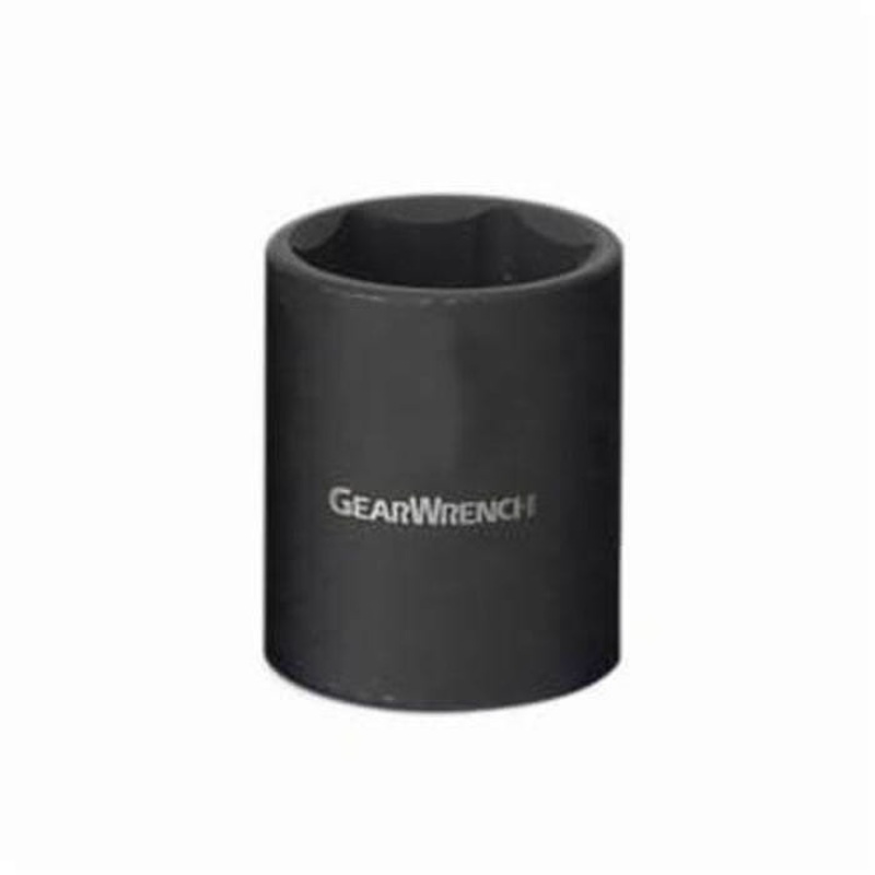 GearWrench Socket, Standard Length, Impact Rated, Metric, Square Drive, 3/8 in Drive, 17 mm Socket, 1.181 in OAL, 0.433 in Opening Depth, 0.976 in Drive End Width, 0.976 in Socket End Width, 6 Points, 0.551 in Bolt Clearance Depth, Chrome Molybdenum Alloy