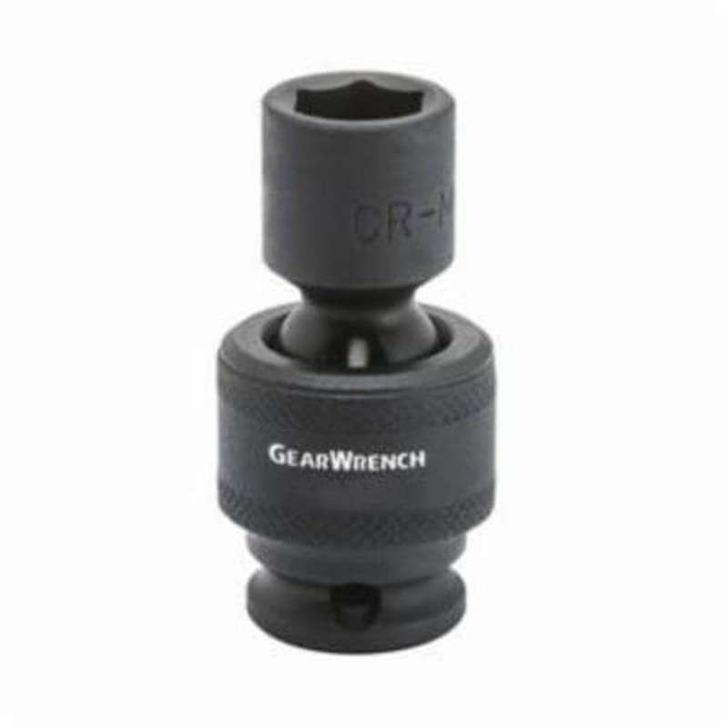 GearWrench Socket, Standard Length Universal, Impact Rated, Imperial, 1/2 in Drive, 3/4 in Socket, 2.598 in OAL, 0.787 in Opening Depth, 1.181 in Drive End Width, 1.102 in Socket End Width, 6 Points, Chrome Molybdenum Alloy Steel, Manganese Phosphate. Manu