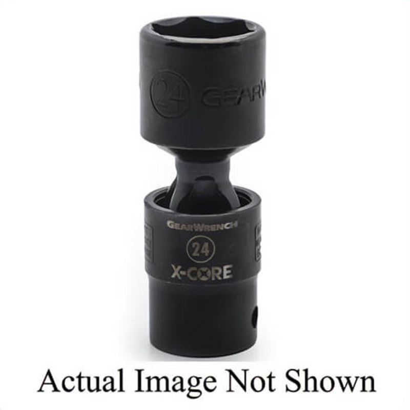 GearWrench X-Core Socket, Impact Rated, Metric, 1/2 in Hex Drive, Standard Socket, 14 mm Socket, 2.819 in OAL, 0.787 in Opening Depth, 0.988 in Drive End Width, 0.827 in Socket End Width, 6 Points, Pinless Universal Style, Chrome Molybdenum Alloy Steel, Black Oxide. Compared to even the best pinned impacts, X-Core pinless impact tools deliver far greater durability and superior access. The exclusive four lug ball and socket design of these GearWrench universal joints, sockets and extensions provides the long lasting strength and capability needed to take on the toughest automotive and industrial applications. When durability is key, the choice is clear. GearWrench X-Core pinless.