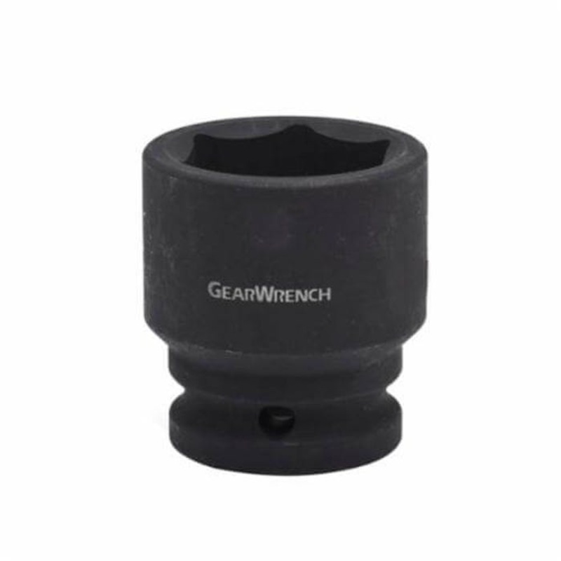 GearWrench Socket, Standard Length, Impact Rated, Metric, Square Drive, 3/4 in Drive, 27 mm Socket, 50 mm OAL, 0.622 in Opening Depth, 44 mm Drive End Width, 42 mm Socket End Width, 6 Points, 0.72 in Bolt Clearance Depth, Chrome Molybdenum Alloy Steel, Manganese Phosphate.
