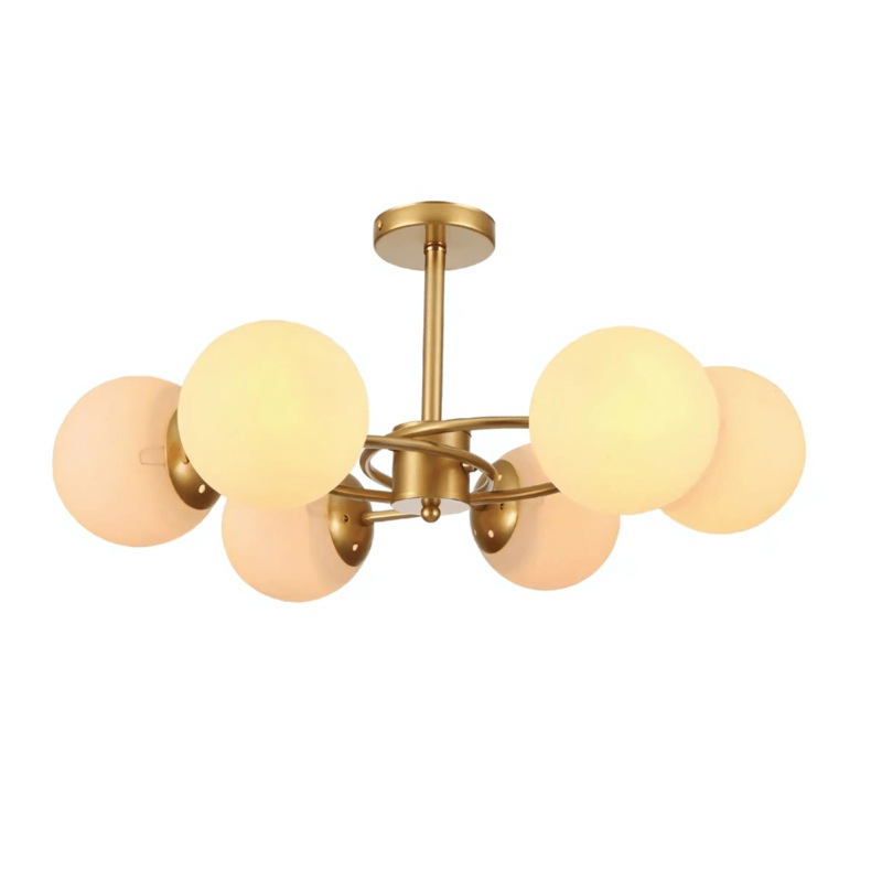 Add a luxurious and modern touch to your space with the Gold Crescent Body Opal 6-Lamp Globe Ceiling Light, the perfect statement piece for any contemporary home.