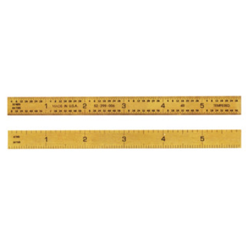 Reading in/metric Size 6"/150mm Type Flex Golden Rule, 6"/150mm, Flex - 261-006 Titanium coated for exceptional wear and visibility. Long-lasting, hard wearing, non-glare finish = RC80 HARDNESS! Scratch resistant, microfine graduations with excellent clari