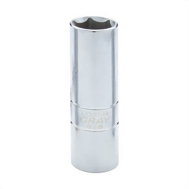 Gray Tools spark plug socket, measurement system: imperial, 1/2 in drive, 5/8 in socket, 2-1/2 in OAL, 6 points, tool steel, polished chrome. Manufacturer Part Number: LD20R Manufacturer: Gray Tools Canada Brand Name: GRAY TOOLS UPC: 067965037731 Package Q