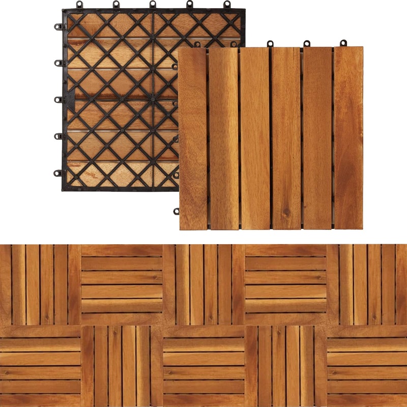 • Selected Natural Acacia Wood: Crafted from 100% natural acacia wood with a PPC base, our interlocking wood tiles boast exceptional sturdiness and water resistance. This waterproof feature not only safeguards the wood patio tiles but also protects the underlying surface, ensuring prolonged durability and resilience against water damage.