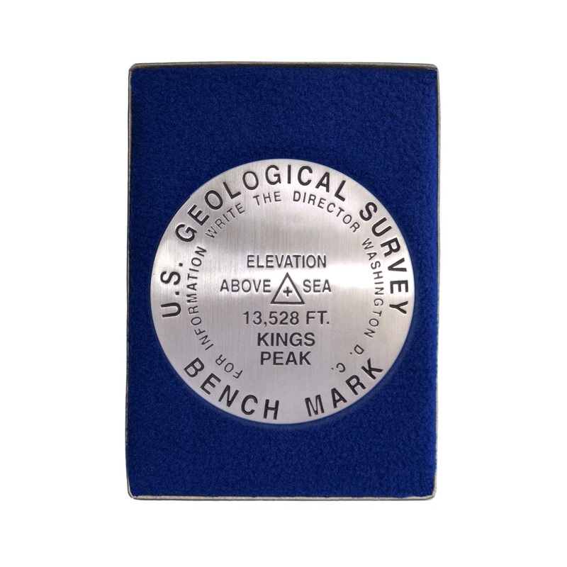 3 1/4 inch diameterCast in fine pewterButton Felt backingIn a fitted fleece interior of a clear-acrylic covered gift box.Place Name: Kings Peak Elevation: 13,528 ft.Coordinates: N44 46' 43'' W110 22' 28'' Location: Unita Range, Utah, USA MarkerSleuth Photo