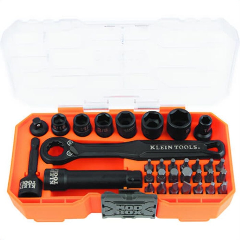 Klein 65300 Drive Impact-Rated Pass Through Socket Set, Chrome-Moly, Chrome-Vanadium, 1/4 in, 32 pc