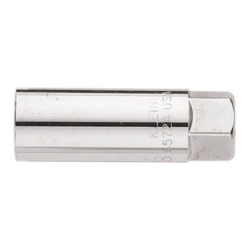 Klein Spark Plug Socket, Male, Imperial, Square Drive, 3/8 in Drive, 3/8 in Socket, 6 Points, Forged Alloy Steel, Polished Chrome Manufacturer Part Number: 65724 Manufacturer: Klein Tools Brand Name: KLEIN TOOLS UPC: 092644657245 Length (in): 2.25 Width (i