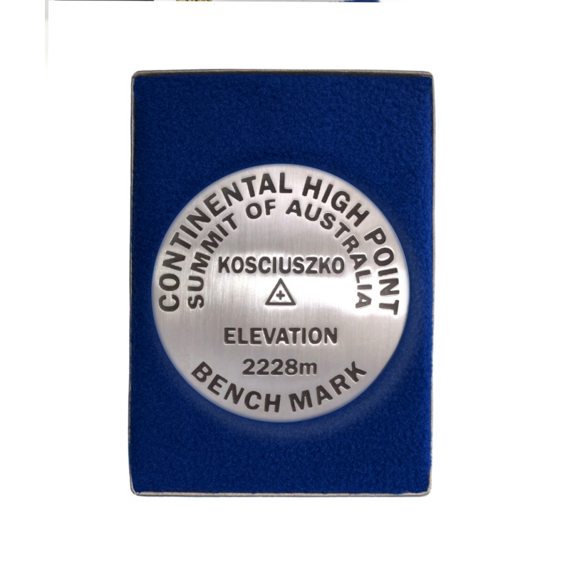 3 1/4 inch diameterCast in fine pewterButton Felt backingIn a fitted fleece interior of a clear-acrylic covered gift box.Place Name: Mount Kosciuszko Elevation: 7310 ft. / 2228 metersCoordinates: S36 27' E148 16' Location: New South Wales, AustraliaMount K